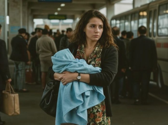 Da fiel mein Blick auf eine Frau mit abgetragenem Mantel, die mit einem verängstigten Kind auf dem Arm unruhig an der Haltestelle umherging. Ihr Blick war verzweifelt, als suchte sie nach einem bestimmten Menschen oder etwas Wichtigem. Unsere Augen trafen sich, und ihre Not schlug mir wie ein kalter Schlag ins Gesicht.