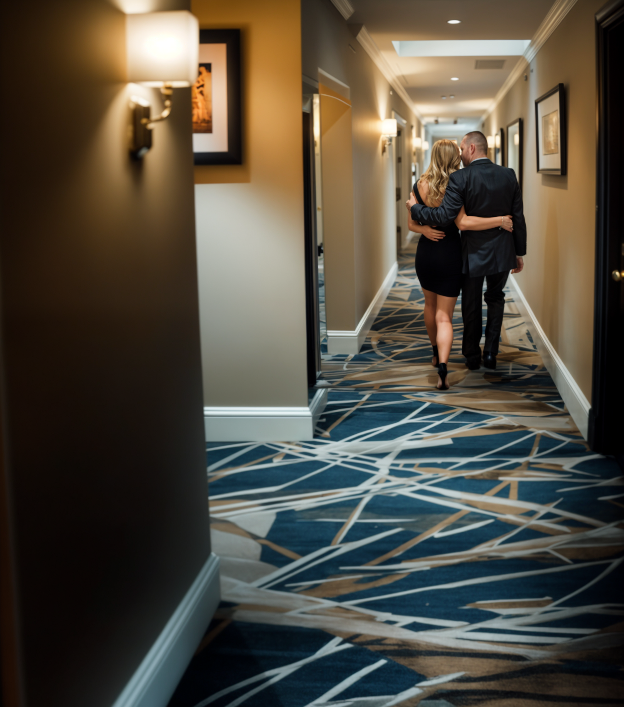 Wir warteten, bis Tom und Lisa ihr Zimmer verließen. Linda hatte arrangiert, dass der Aufzug „ausfällt“, sobald sie ihn betraten. Maskiert als Wartungstechniker kletterte Mark hinein, kurz bevor die Türen sich schlossen.