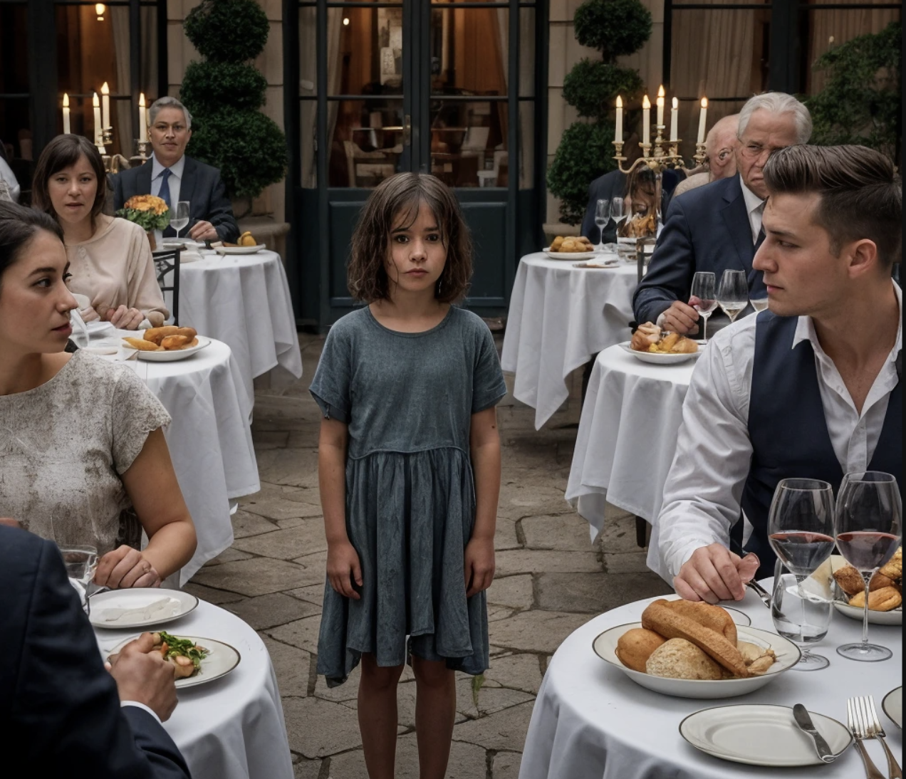 Ein Mann in einem maßgeschneiderten dunkelblauen Anzug, gerade im Begriff, seinen ersten Bissen eines perfekt gereiften Steaks zu genießen, verharrte abrupt. Langsam drehte er seinen Kopf zu der Quelle dieser unerwarteten Frage – ein kleines Mädchen mit zerzaustem Haar, schmutzigen Turnschuhen und Augen, die zugleich von Hoffnung und Hunger zeugten. Niemand hätte gedacht, dass diese simple Bitte ihr Leben für immer verändern würde.