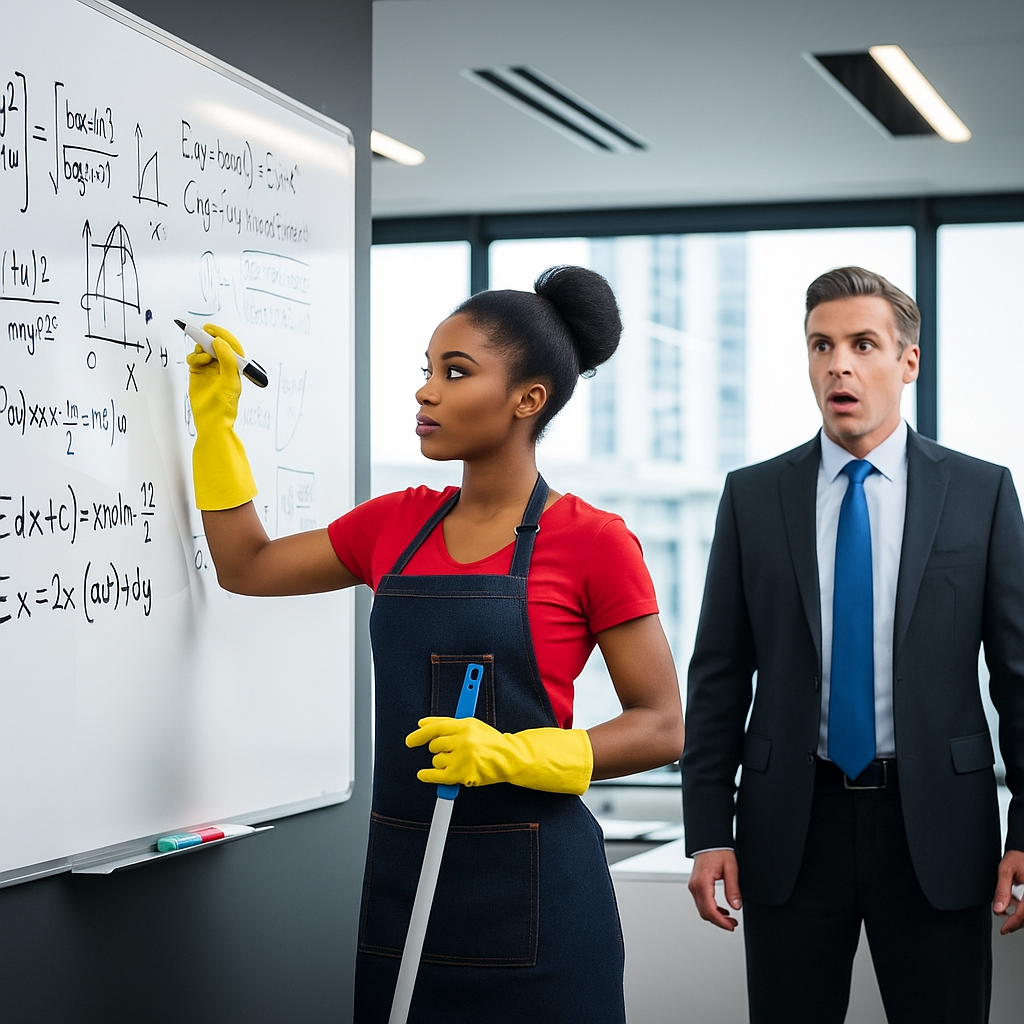 Wichtigster Einblick: Ein innerer Konflikt quälte sie kurz – sollte sie sich raushalten oder eingreifen? Schließlich setzte sie ihren Besen ab, betrat entschlossen den Raum und näherte sich der Tafel mit den komplizierten Formeln und Symbolen. Mit ihrer MIT-Erfahrung begann sie die Gleichungen zu durchdringen. Und dann entdeckte sie die Ursache des Scheiterns: ein winziger Fehler, der allen Experten entgangen war.