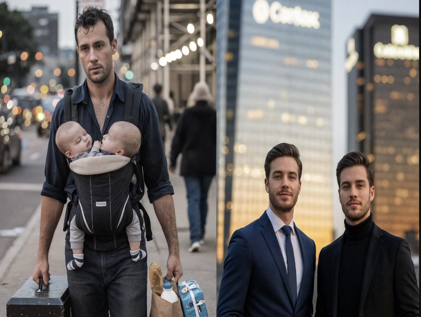 Während die Lichter der Stadt gegen den düster werdenden Himmel flimmerten, schritt Daniel Brooks mühsam den Gehweg entlang. Seine Schultern schienen schwerer zu tragen als nur den Werkzeugkasten in der einen Hand und die Einkaufstasche in der anderen. Tief an seine Brust gedrückt schlummerten seine sechs Monate alten Zwillingssöhne, Matthew und Michael, im Babytragegeschirr, unwissend von dem inneren Sturm, den ihr Vater mit sich trug.
