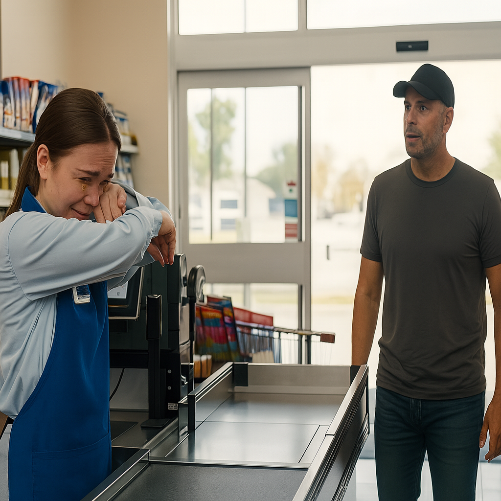 Zunächst bemerkte sie ihn nicht. Hinter den Gängen summte leise der Bodenreiniger, während Owen Grayson, in eine abgetragene Everyday Save-Jacke gehüllt und die sperrige Maschine wie ein ermüdeter Teilzeitmitarbeiter schiebend, versuchte, keinen Laut von sich zu geben, als er an der Kühlabteilung vorbeiging. Plötzlich vernahm er ein leises, gedämpftes Schluchzen – ein leiser Versuch, die Tränen zu unterdrücken, der jedoch scheiterte.