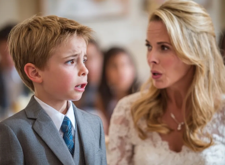 ">Er ist nicht mein Kind!” rief sie scharf, laut genug, dass die Brautjungfern hinsahen. ">Ich will keine Bilder mit ihm. Weg mit ihm!”