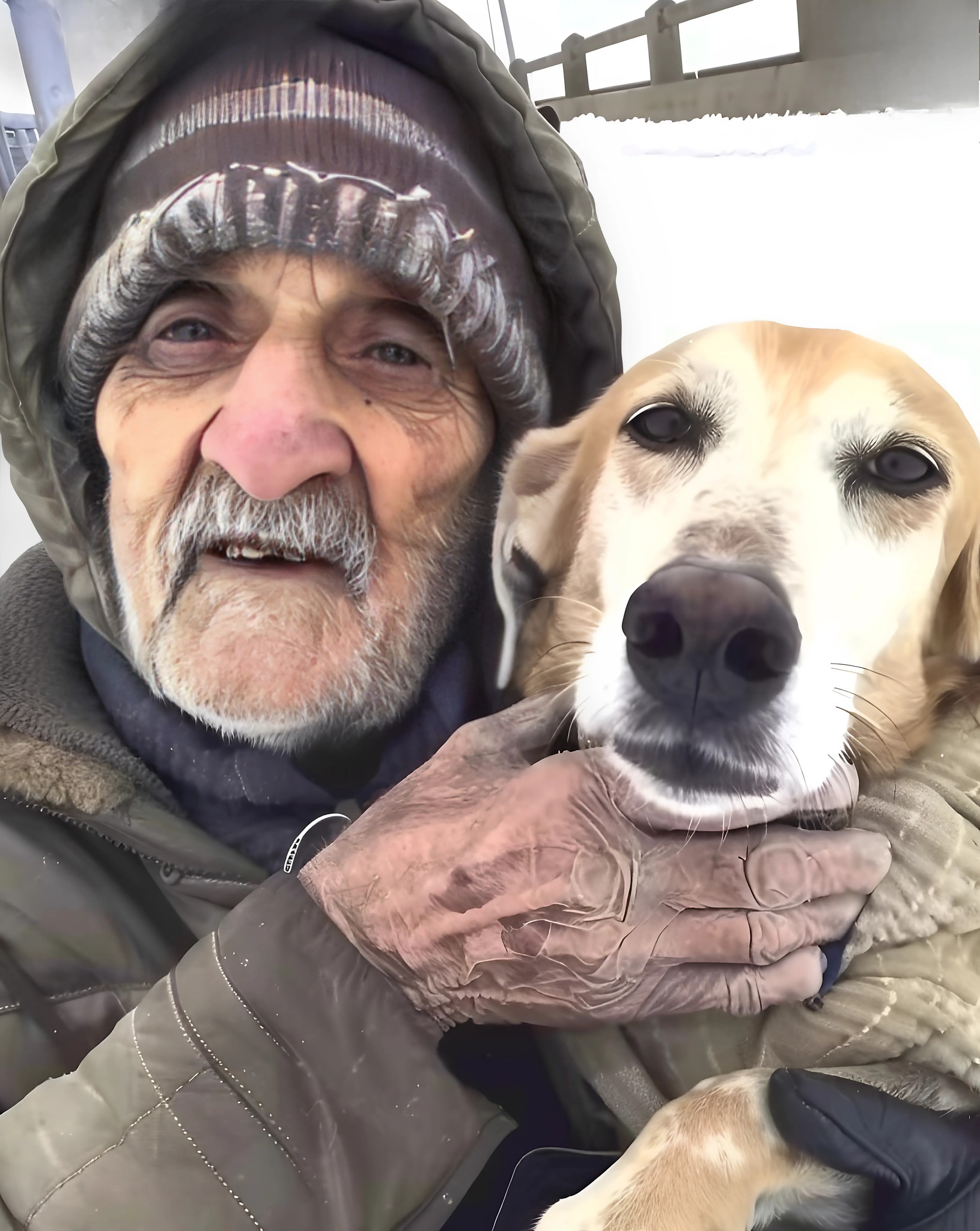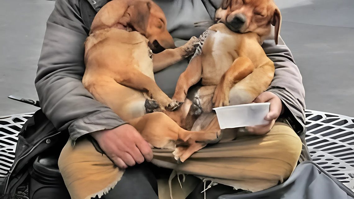 Er bat nie um Hilfe oder Aufmerksamkeit. Ruhig saß er da und streichelte sanft seine Hunde, während die Welt unaufhörlich an ihm vorbeizog.