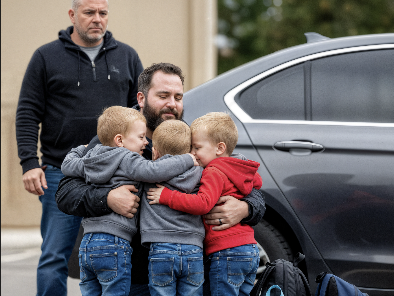 Auf der gegenüberliegenden Straßenseite parkte ein silbernes, glänzendes Auto, das ich nicht kannte. Es reflektierte die letzten Strahlen des Spätnachmittagslichts so hell, dass es fast unwirklich wirkte. Mein Herz setzte einen Schlag aus, und ich blieb mitten auf der Einfahrt stehen. Die Jungen – Ethan, Liam und Noah – rannten voraus, ihre Rucksäcke hüpften auf ihren kleinen Schultern, während sie ganz vertieft in Gespräche über Fingerfarbe und den Nachmittagssnack waren. Sie bemerkten den Mann, der lässig an dem Fahrzeug lehnte, nicht. Ich hingegen schon.