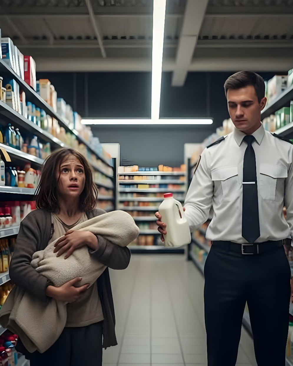 Am Rande von Willowbrook herrschte bei Einbruch der Dämmerung sonst eine friedliche Stille in einem kleinen Supermarkt. Doch an diesem besonderen Abend schien die Ruhe eine ungewohnte Schwere zu tragen. Im Zentrum dieses Moments stand Kayla, ein neunjähriges Mädchen, das ihren kleinen Bruder fest in einem Arm hielt und mit der anderen Hand ein Milchkarton umklammerte.