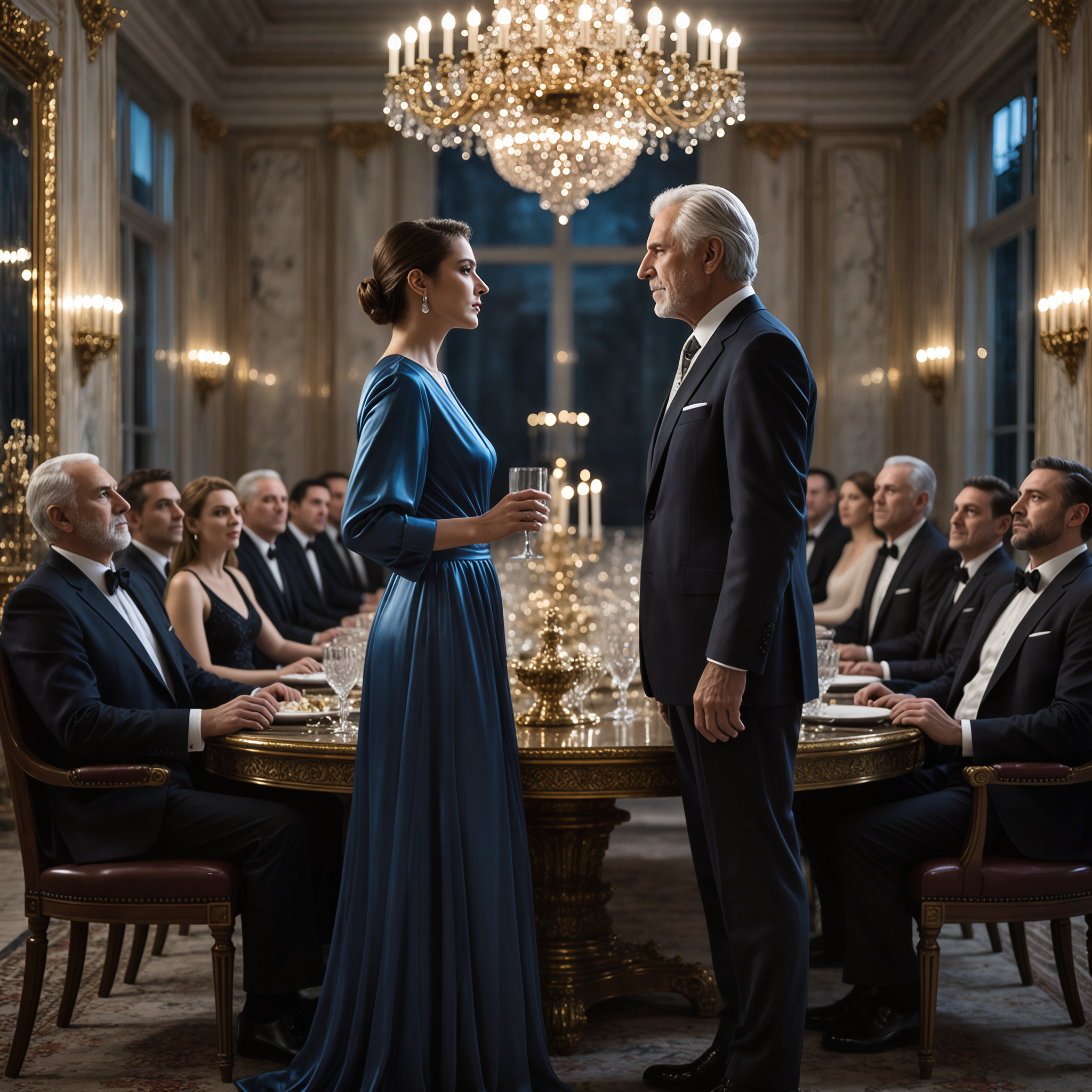 Beim Dinner, an einem langen Tisch mit feiner Tafelwäsche und erlesenen Speisen, wurde ich direkt scharf befragt – über meine Herkunft, Ausbildung, Familie. Maxwell warb um Kontrolle und Demütigung.