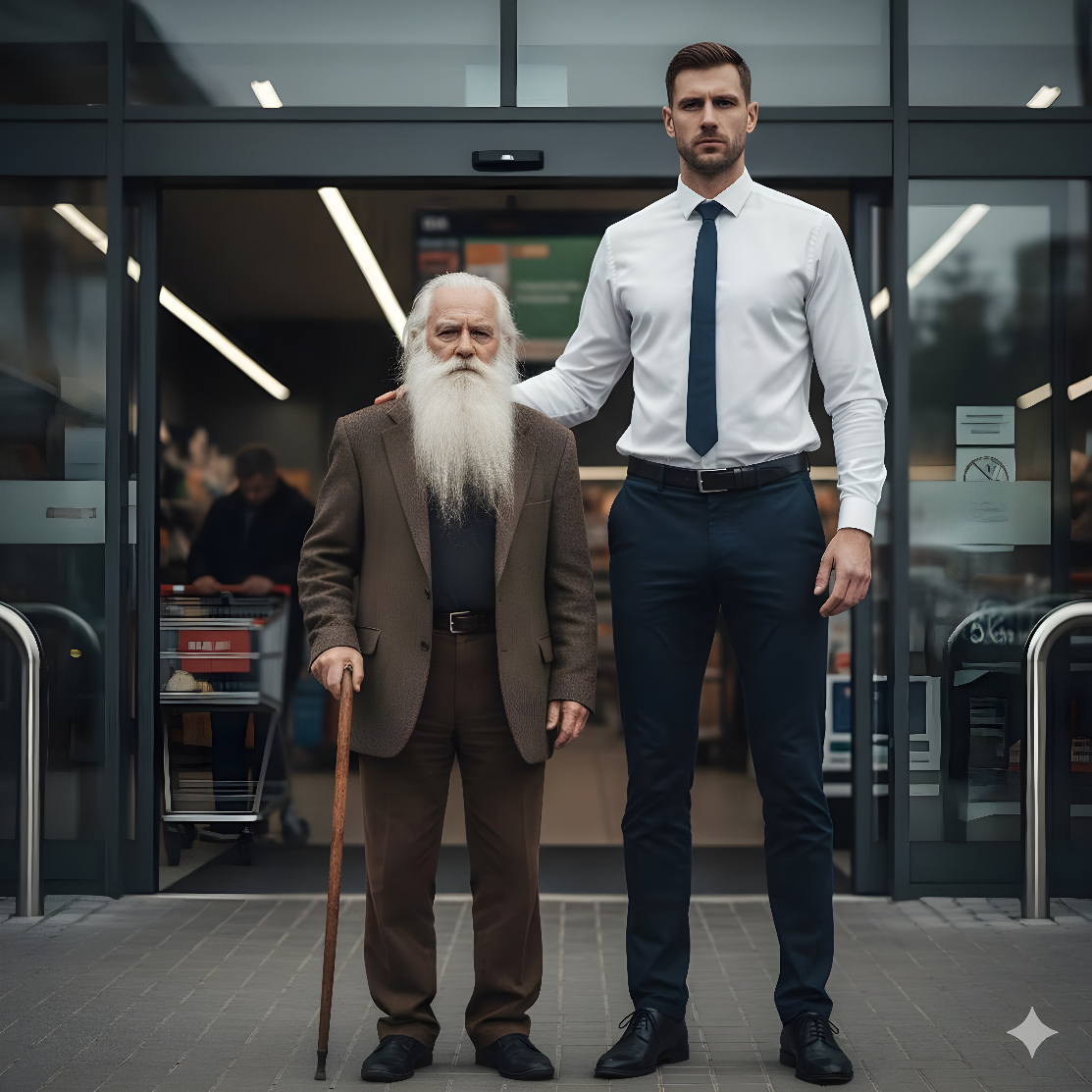 Eine Woche später kehrte ich zurück in den Supermarkt, diesmal in einem anthrazitfarbenen Anzug, mit poliertem Stock und italienischen Schuhen. Die automatischen Türen öffneten sich, als würde ein König eintreten. Überall begegneten mir Lächeln und Ehrungen.