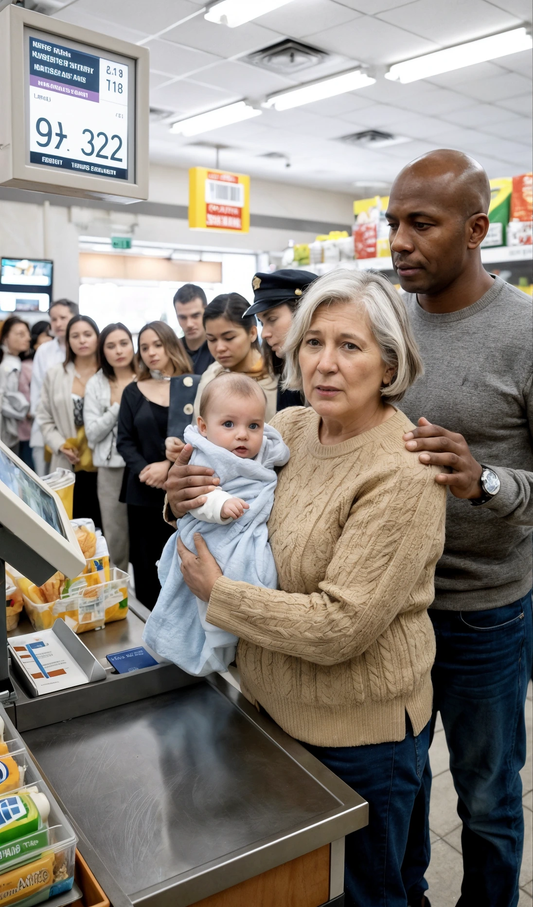 Grace begann sich zu regen – zunächst leise, dann mit lauterem, durchdringendem Weinen, das alle Blicke in der Schlange auf sich zog.