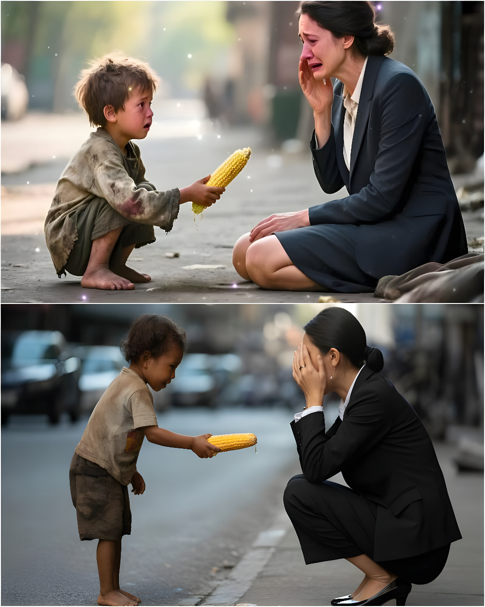 Ein Bittsteller teilt seinen einzigen Mais mit einer weinenden Millionärin – ihre Reaktion war unvorhersehbar