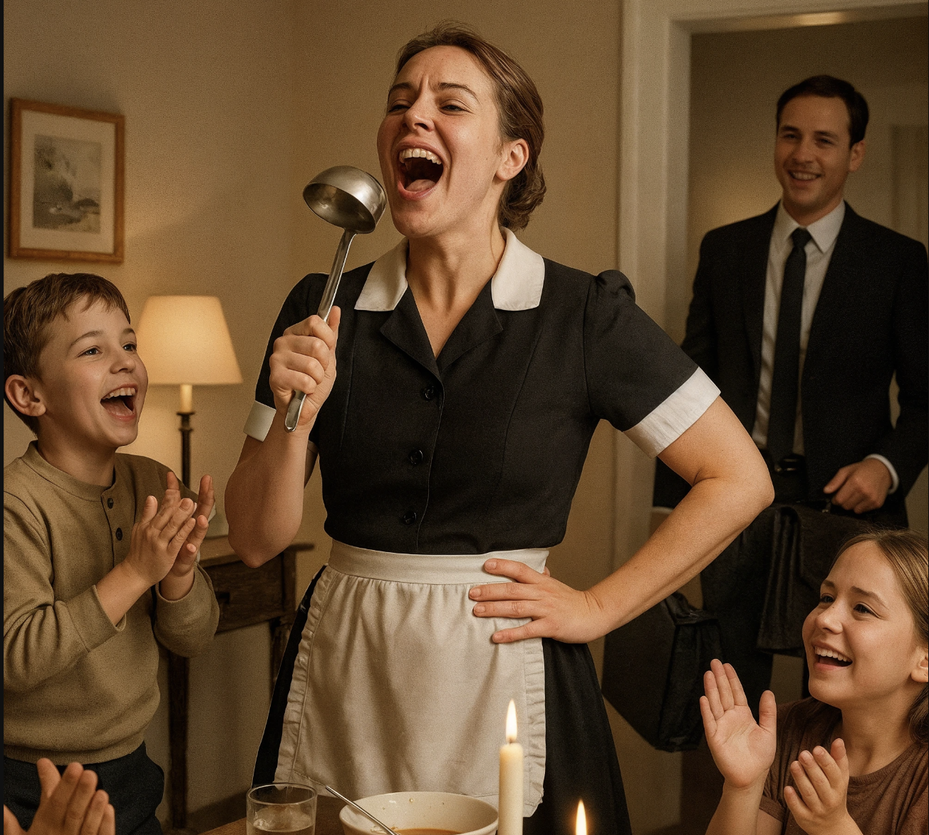 Adrian stand da, baff und mit der Hand auf dem Mund, während Tränen in seinen Augen aufstiegen. Weder der Kuchen noch die festliche Atmosphäre hatten ihn berührt — es war die unverfälschte, reine Liebe, die den Raum erfüllte. Rosa, die Dienstmagd, die ihm oft nicht mehr als ein flüchtiger Blick wert war, schenkte seinen Kindern das, was er ihnen über Jahre nicht geben konnte: ein Gefühl von Familie.