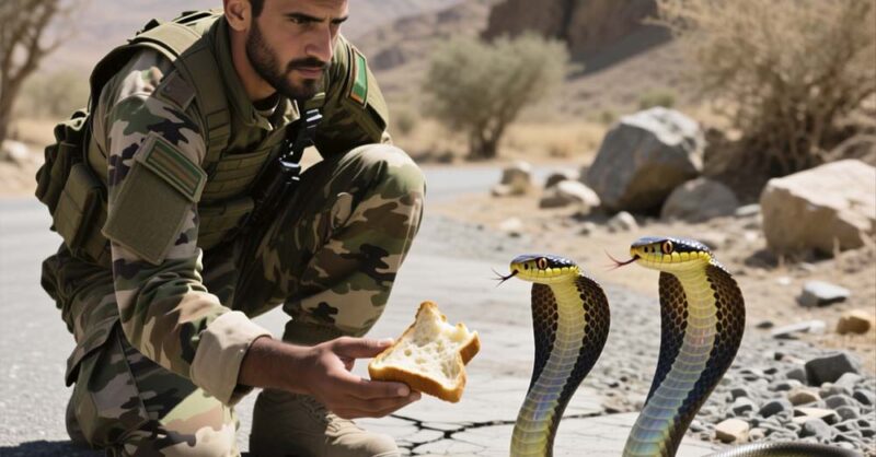 Statt sie zu eliminieren, wie es das Protokoll vorsah, wurde er von einer Gefühlsregung geleitet und begann, sie aus der Ferne mit kleinen Portionen seiner spärlichen Rationen zu füttern. Anfangs vorsichtig und misstrauisch, gewöhnten sich die Schlangen allmählich an den Geruch des Soldaten und das ungemeine Ritual entwickelte sich zu einer stillen Verbindung zwischen dem Krieger und den gefleckten Geschöpfen.