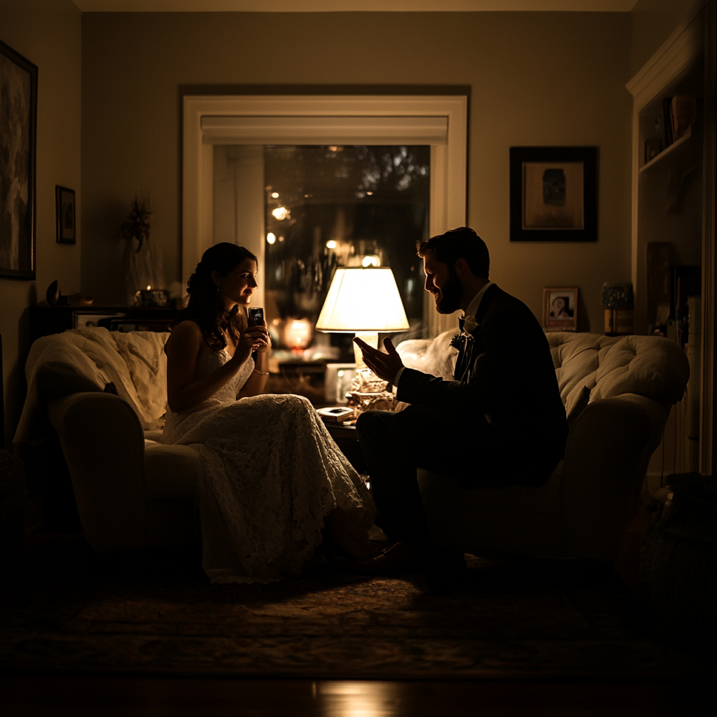 In jener Nacht, nach dem die letzten Gäste gegangen waren und unser Zuhause in eine friedliche Stille getaucht war, hatten Leo und ich endlich einen Moment für uns. Wir saßen im schwachen Licht des Wohnzimmers, noch in unseren Hochzeitskleidern und Anzügen, Champagnergläser in der Hand.