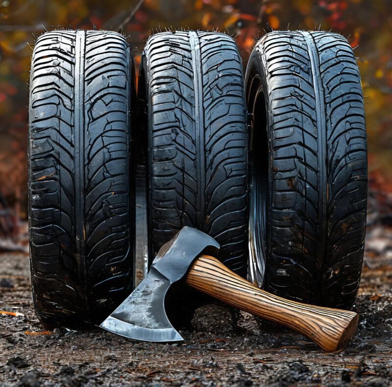 Auch als praktische Hilfe beim Holzhacken lassen sich alte Reifen verwenden. Werden zwei Reifen übereinandergestellt und mit Holzstücken befüllt, bleibt das Holz beim Schneiden an Ort und Stelle. Dadurch wird der gesamte Prozess sicherer und sauberer.