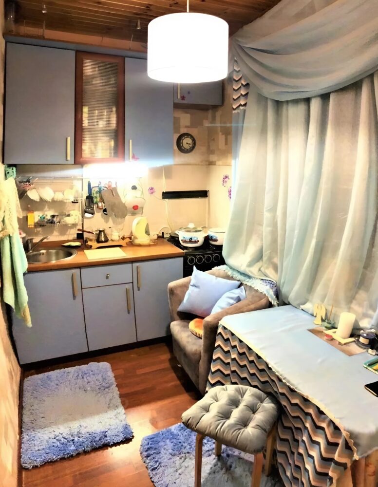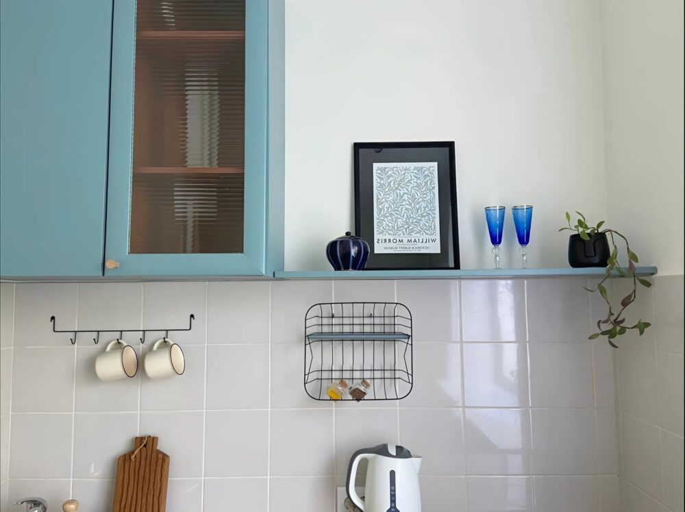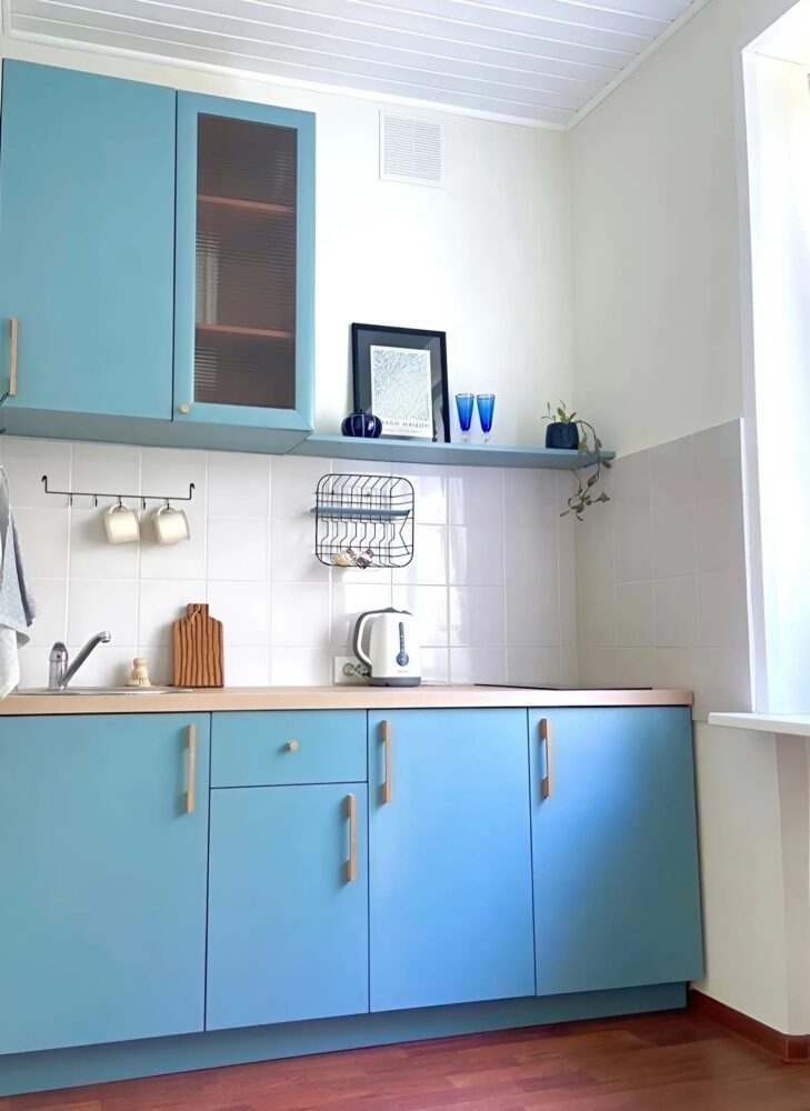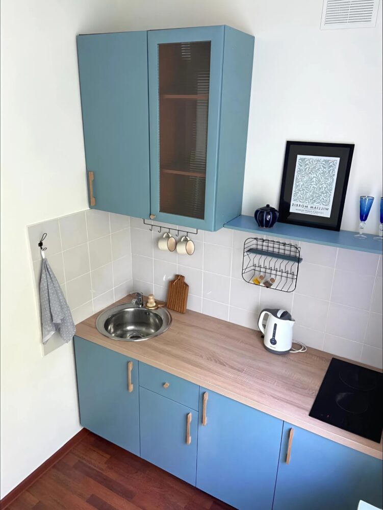 Zum Abschluss wurde der alte Herd durch ein elegantes, modernes Kochfeld ersetzt, das sich harmonisch in das neue Design einfügte. Obwohl sie die Hauptfarbe Blau beibehielt, fühlte sich die Küche komplett neu an – heller, stilvoller und viel funktionaler.