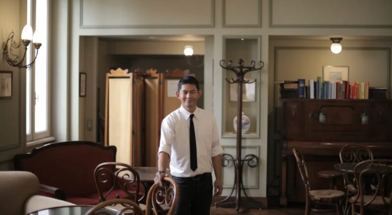 Simon war erschüttert. Es war eine harte Entscheidung, doch er nahm die Schürze eines Kellners und trat seine neue Position an.