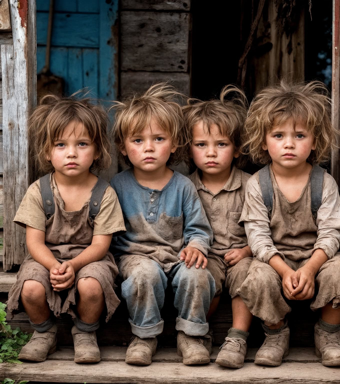 Ein eisiger Luftzug erfüllte das Haus, als sich die Tür öffnete. Anastasia eilte zu Pjotr ​​und blieb im Türrahmen stehen: Auf den Holzstufen, unter dem flackernden Lampenlicht, warteten vier Kleinkinder, eingehüllt in alte, durchnässte Decken, schweigend.