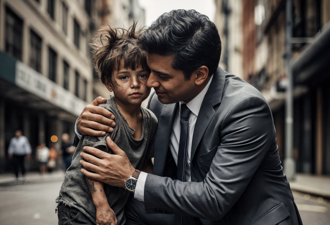 Léo drückte sein Gesicht an Davids Brust – wie an jenem ersten Tag auf der Straße. Sie verharrten dort lange im stillen Moment. In diesem Augenblick wurde David klar: An jenem Tag, den er mit Gedanken an Profit und Termine begann, hatte er etwas gefunden, das mit Geld nicht zu kaufen ist – jemanden, der einfach nur Liebe braucht.