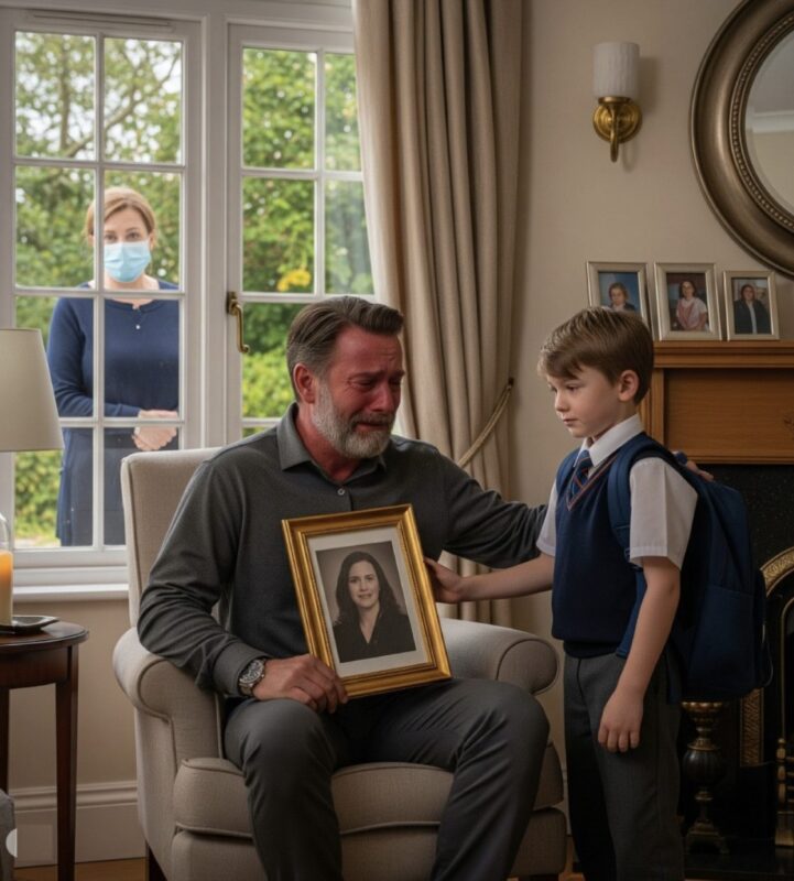In der Stille jener Nacht, als Liam schlief, saß ich allein im Wohnzimmer, den Blick starr auf dasselbe Foto gerichtet – Emily, meine Frau, die vor zwei Jahren bei einem Verkehrsunfall ums Leben gekommen sein sollte.