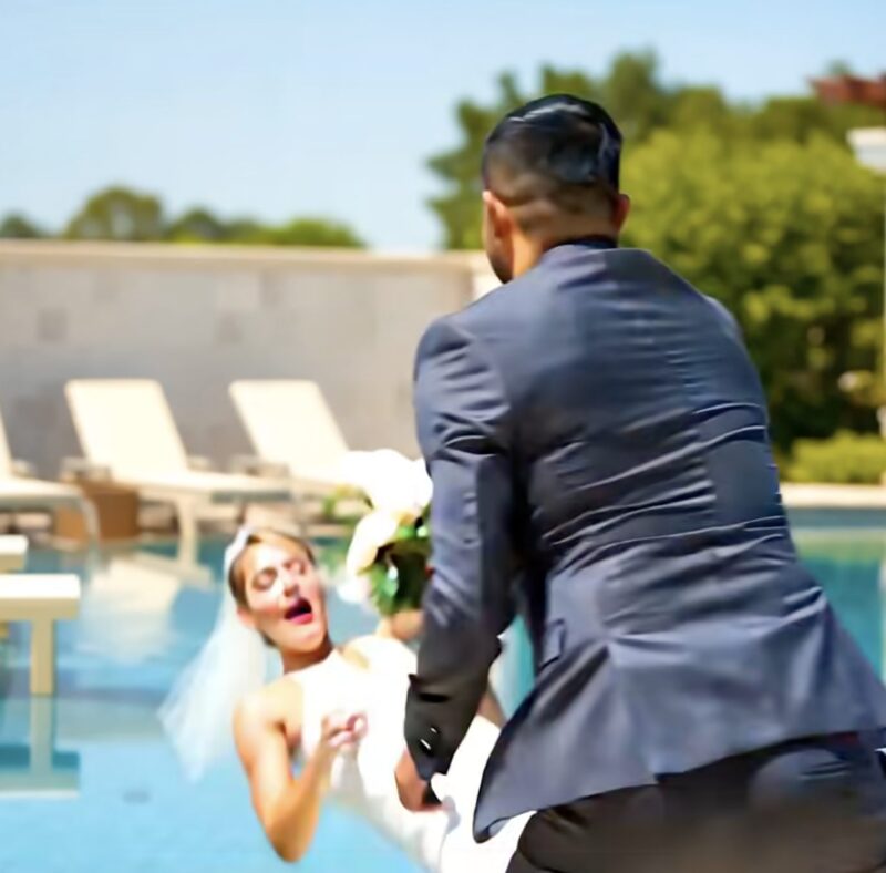 Einige Monate vor unserer Hochzeit lagen Zsolt und ich gemeinsam im Bett und ließen das Licht seines Handys den Raum schwach erhellen. Er lachte laut und mit Tränen in den Augen über ein Video, das zeigte, wie ein Bräutigam seine elegant gekleidete Braut mitten auf der Feier einfach in das Schwimmbecken stürzte.
