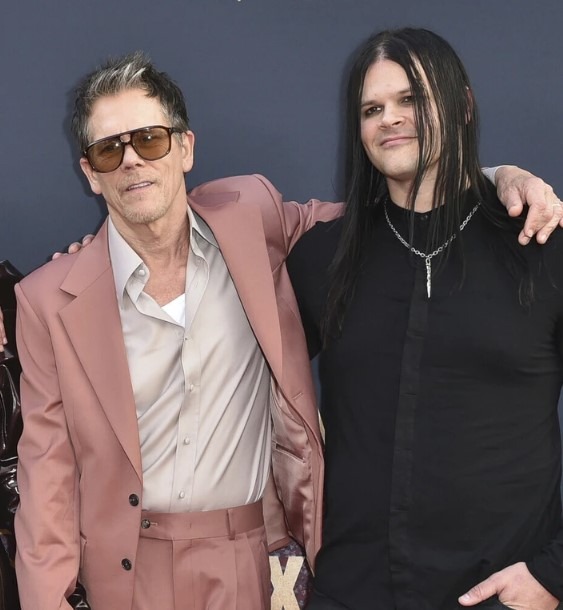 Kevin Bacon zeigte sich in einem schicken Pfirsich-Anzug, kombiniert mit einem olivgrünen Hemd und braunen Stiefeln. Kyra trug eine gewagte Minirobe mit voluminösen Ärmeln. Sosie entschied sich für einen lässigen Pullover mit T. Curry-Motiv.