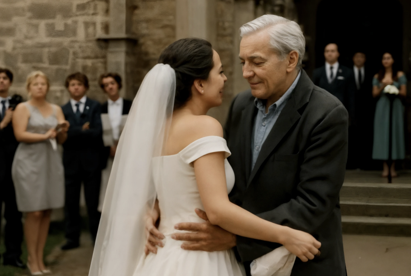 Als sie zusammen die Kirche betraten, legte sich ehrfürchtiges Schweigen über die Besucher. Claire lächelte, Arm in Arm mit ihm, während Ben unten am Altar ihr Lächeln erwiderte – ohne Verwirrung oder Erstaunen, nur mit Verständnis.